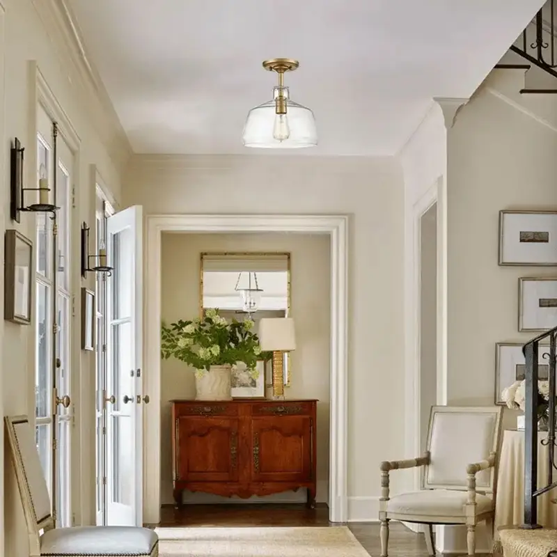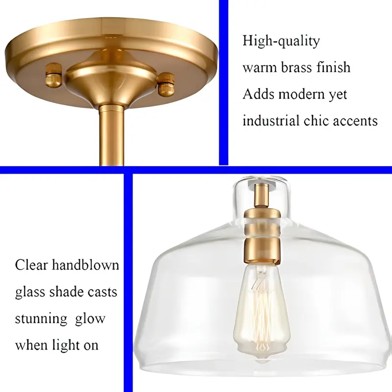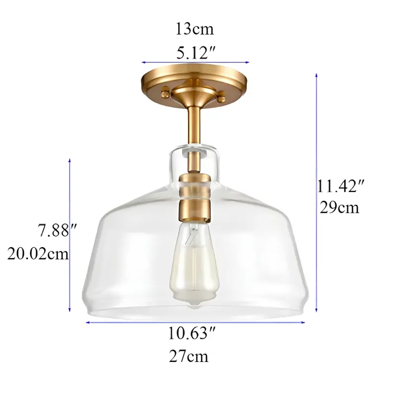 Constructed with a durable glass shade, this fixture provides a non-detachable design for lasting performance. The semi-flush mount ensures easy installation with the included hardware, making it a convenient choice for both homeowners and professionals. The hard-wired power supply supports an acceptable voltage range of 120V, delivering consistent and reliable lighting. Designed without a built-in light source, this fixture allows flexibility in selecting your preferred bulb.