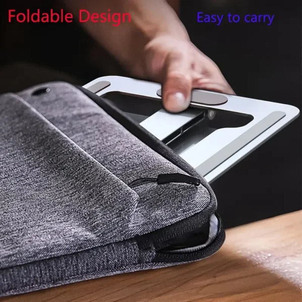 Elevate your workspace with the Foldable Laptop Stand, crafted from high-quality silvery aluminum for durability and style. This adjustable ergonomic laptop holder is designed to support laptops ranging from 10 to 16 inches, making it versatile enough to accommodate various models. The stand helps improve posture by lifting the laptop screen to eye level, reducing neck strain and providing a more comfortable working environment.