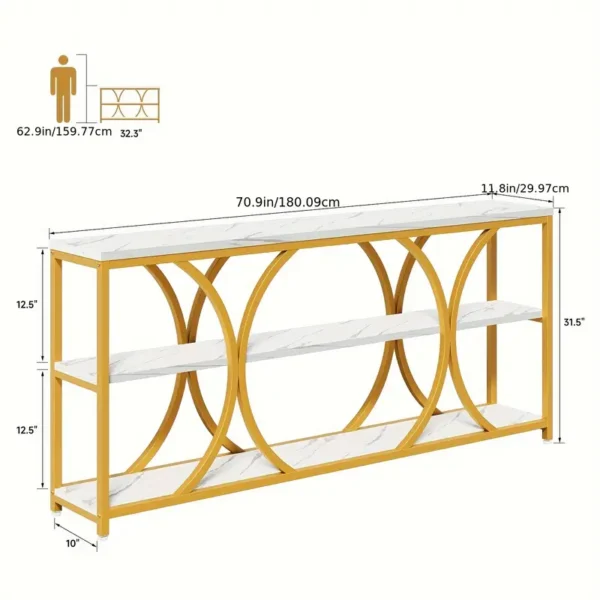70.8″ Gold Console Table, 3 Tier Entryway Table, Hallway Table